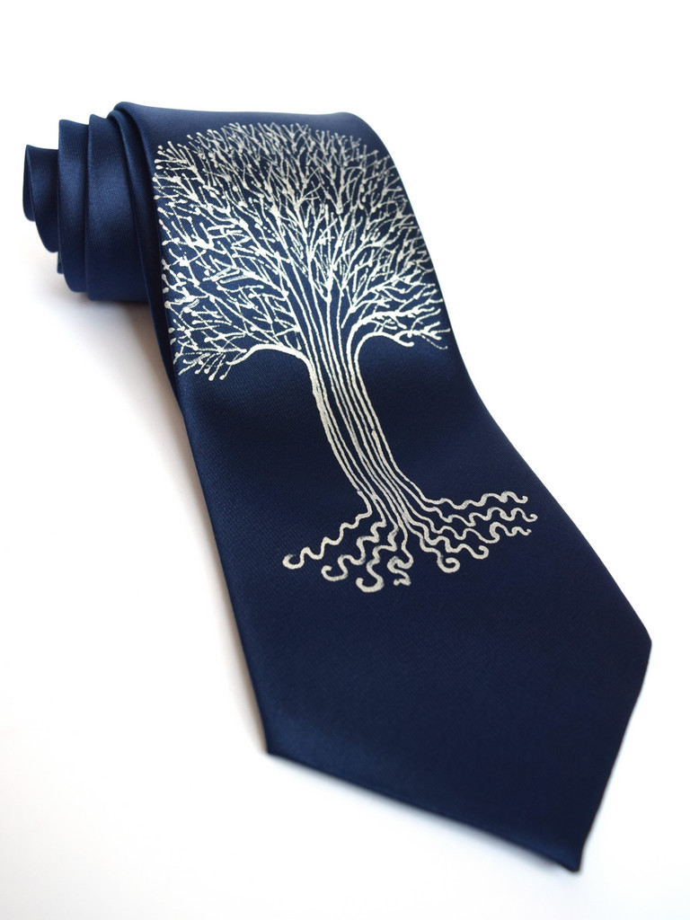 – MADE to ORDER. Will be very similar to the one seen, but each is a complete original. Navy tie with a silver-white tree inspired by LOTR